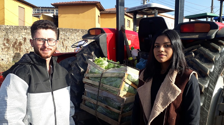 Um casal de namorados, Erick Henrique da Rosa Silva e Yasmin Vitória Matos, também estavam a postos no trator. Erick produz alface, repolho, acelga, couve, rúcula e escarola no Bairro Gabriel. Yasmim tem sua roça no Regi, com a plantação de couve, milho, alface.