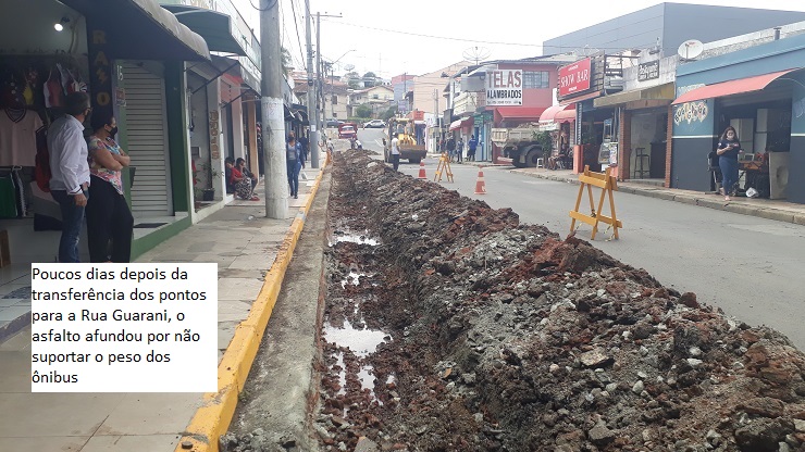Poucos dias depois da transferência dos pontos para a Rua Guarani, vitrine online noticiou o afundamento da pista ao longo do trecho onde, porque o piso da rua não suportou o peso dos ônibus, o surgimento de diversos buracos grandes que ampliaram as dificuldades de acesso para os ônibus ou descida para a calçada especialmente aos idosos, crianças e portadores de dificuldade de locomoção.