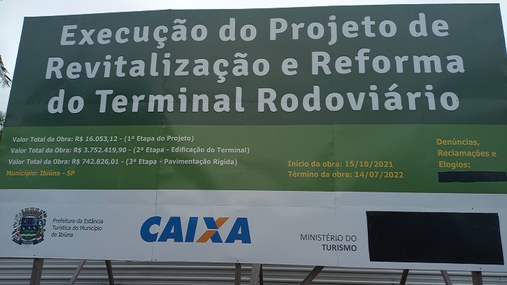 A reforma da rodoviária de Ibiúna, pelo contrato firmado com a Caixa Econômica Federal, deveria estar concluída hoje, dia 14 de julho de 2022.