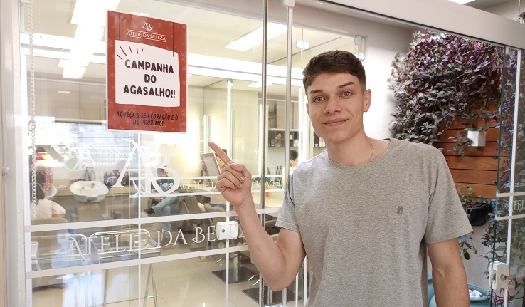 Da mesma forma, e sensível à necessidade de ajudar ao próximo, o Ateliê da Beleza também recolheu agasalhos em uma campanha com suas clientes. Os proprietários do salão na Rua XV de Novembro, Júlia Moraes e seu filho, Maurício do Prado, também disseram presente.