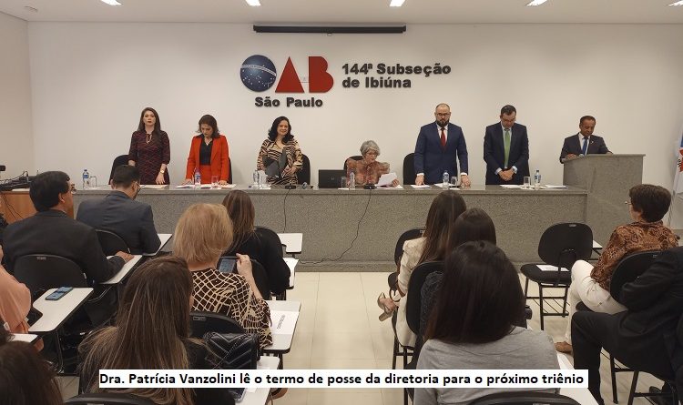 A diretoria da OAB-Subseção Ibiúna foi empossada na manhã de hoje (26) pela presidente da Seccional do Estado de São Paulo, dra. Patrícia Vanzolini, em solenidade realizada na sede da entidade em Ibiúna, cujo auditório ficou lotado pelas presenças de advogados e representantes de OABs de diversas cidades, principalmente na região.