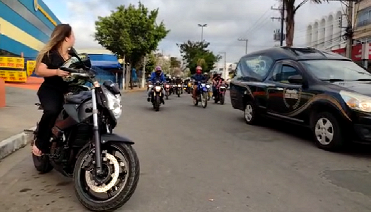 Uma viatura da Guarda Civil Municipal, com a sirene ligada, abria o cortejo, seguida por dezenas de motocicletas, que aceleravam os motores provocando um som marcante. Atrás, dezenas de carros também faziam parte da fila de adeus