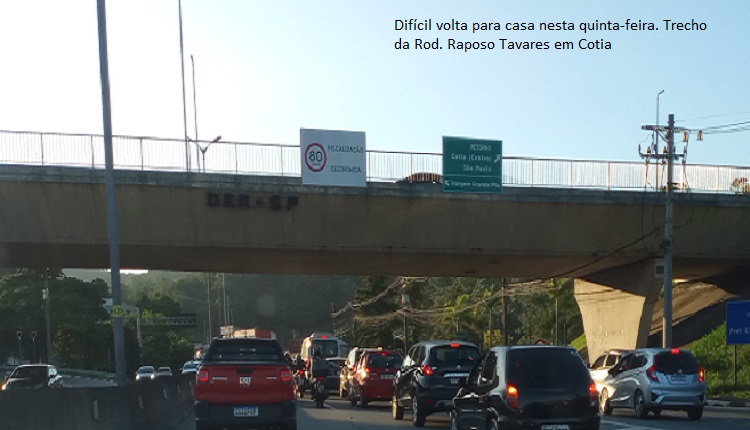 A Rodovia Raposo Tavares estava de doer nesta quinta-feira (26), tanto na parte da manhã quanto à tarde, talvez ainda pior. Nessa rodovia que os ibiunenses utilizam para chegar na capital paulista o desafio ao sistema nervoso foi [novidade, né?] ser persistente e ficar muito atento e as aulas ainda nem começaram. Isso significa que a situação vai piorar ainda mais, com milhões de carros circulando diariamente.