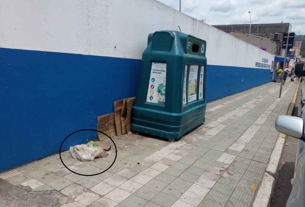 Hoje, por volta das 12h, ao lado de um coletor de lixo instalado próximo do muro da Escola Municipal Professora Oriane Cândida de Paula Silva, na Rua XV de Novembro, havia um saco possivelmente contendo material orgânico. Sentia-se um cheiro terrível de coisa podre. E as mães que iam buscar seus filhos na escola passavam placidamente por esse local com as crianças.