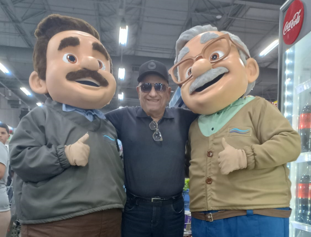 No ano em que o Supermercado Ibiúna comemora neste mês de dezembro seu 70º aniversário, num dia de grande movimento, não poderiam faltar as figuras de seus fundadores, já falecidos, no formato de bonecos que interagiram com clientes, e despertaram a atenção especialmente as crianças.