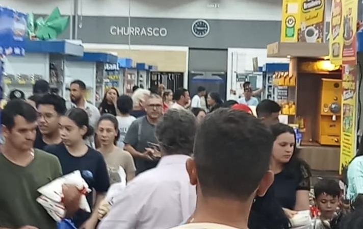 Corredores de mercadorias lotados, carrinhos cheios de produtos, especialmente alimentos, e, naturalmente, muita paciência para chegar a vez de registrar e pagar as compras.