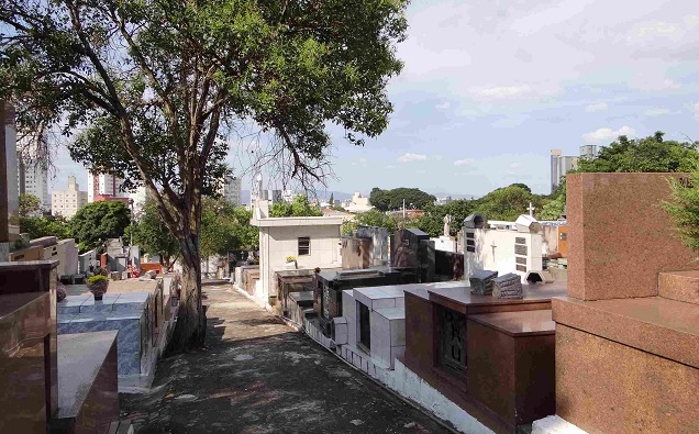 Numa rua à esquerda da entrada principal havia o túmulo de uma mulher, lembro-me apenas do sobrenome Expedita, cheio de oferendas, muitas imagens de santos, algumas maiores, de Nossa Senhora Aparecida, e agradecimentos pela graça recebida. Aparentemente, parece se tratar de milagres, curas ou algo do gênero. Mas a maioria absoluta dos túmulos era mais despojada, comunicando apenas o sobrenome das famílias, fotos dos falecidos, mensagens de amor de uma mãe por uma filha, de uma filha para o pai e tantas outras sutilezas da alma humana em tentar superar a ideia da morte por meio de palavras condutoras de sentimentos.