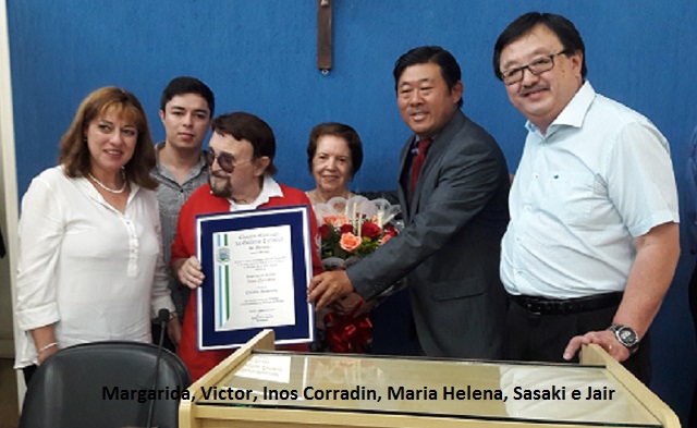O título foi proposto pelo presidente da Câmara, vereador Paulo Sasaki por indicação do casal Jair Kohji Sakoda e Margarida Cassaburi Sakoda. Inos Corradin estava acompanhado de sua mulher, a ibiunense Maria Helena Rolim de Freitas, com quem se casou em 1960.