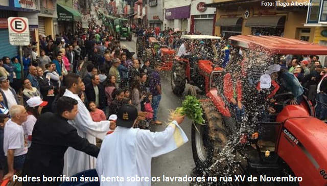 Depois da missa, a procissão com centenas de tratores, muitos dos quais trazendo caixas com produtos de seus sítios, seguiu pela avenida São Sebastião, desceu a rua XV de Novembro em direção à praça da Matriz de Nossa Senhora das Dores, onde ouve um feirão de verduras. No caminho, os lavradores, seus tratores e seus produtos eram borrifados com água benta e abençoados pelos padres, enquanto o povo acompanhavam a procissão das calçadas.
