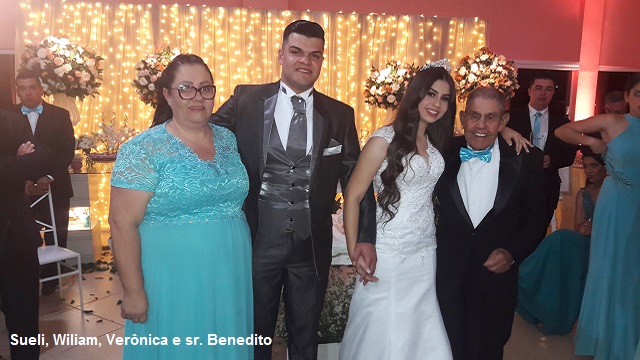 Entre os padrinhos se encontrava o patriarca da família Marmelo, Benedito Francisco Cardoso, 93, que foi saudado pelo mestre da cerimônia e aplaudido reverencialmente. Sueli Cardoso Oliveira cuidou dele o tempo todo de modo carinhoso.