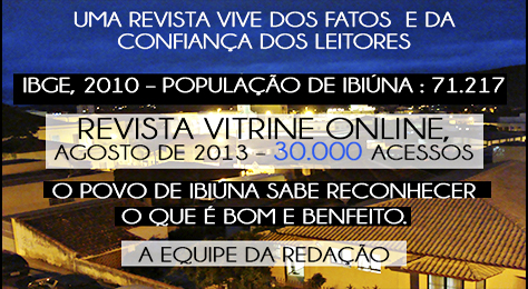 A revista vitrine online chegou aos 30.000 acessos neste mês de agosto desde sua renovação feita em dezembro de 2012. Nossa equipe agradece a toda população ibiunense pelo reconhecimento do trabalho feito pela vitrine online. A revista está sempre com o propósito de servir Ibiúna, aberta a todas as manifestações do seu povo em tudo que possa contribuir para a melhoria da qualidade de vida no município. Além de informações de todos os setores, há um espaço privilegiado para que o leitor manifeste sua sugestão ou queixa em relação a tudo aquilo que possa representar negligência, prevaricação ou omissão dos poderes públicos. Entre em contato com nossa equipe através da página de contato. Continue nos acompanhando!