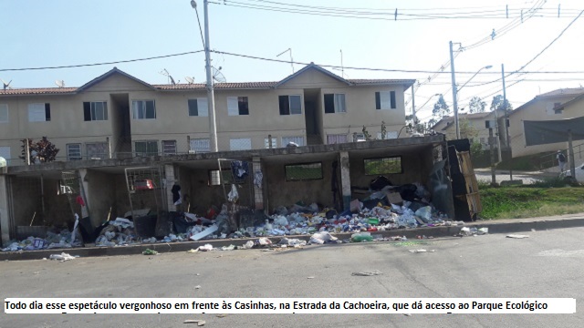 Em frente às chamadas Casinhas, no início das Estrada da Cachoeira, o espetáculo diário do lixo acumulado e transbordando pela via pública, outra vergonha para a estância turística. Mas esse não é caso isolado, existe em todas as estradas do município. Cadê os caminhões alugados com essa finalidade, e celebrados com pompa e circunstância?