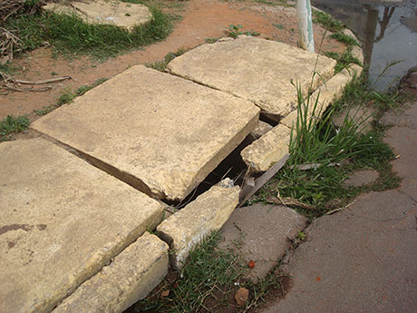 Três bueiros na rua onde atualmente se localiza o Espaço Cultural “João Luiz Cassimiro”, inaugurado há pouco tempo, são armadilhas perigosas a céu aberto para os transeuntes que por ali passam, já que a calçada também é estreita. Basta uma distração ou uma dificuldade de pessoa idosa para que um acidente aconteça.