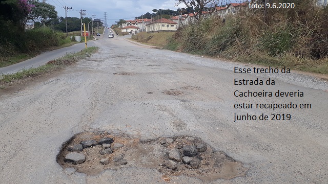 Na Estrada da Cachoeira os buracos continuam infernizando a vida dos motoristas. Já publicamos aqui a situação crônica existente na altura da bifurcação dessa estrada com a via que liga Ibiúna com Mairinque. Um trecho de cerca de 800 metros que deveria ser recapeado em junho de 2019 foi parcialmente feito, mas a maior parte, que inclui o trecho acima citado, é um queijo suíço. Mesmo no trecho recapeado, seis meses depois de entregue ao tráfego, já apresentava trincas e buracos, como se pode verificar até o momento.