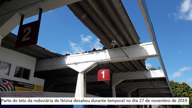 Exatamente hoje (9), o buraco deixado pelo desabamento de uma parte do telhado da rodoviária de Ibiúna, no dia 27 de novembro do ano passado por um temporal, continua sem reparo e as telhas, como já noticiamos aqui reiteradamente, continuam depositadas no chão na parte interna de um isolamento feito com cavaletes e fita instalados pela Guarda Civil Municipal.