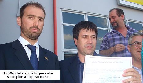 Bello, emocionado, ouviu do juiz: “Como juiz eleitoral da Comarca de Ibiúna nas eleições de 2012, declaro que a maioria dos votos foram conquistados pelo candidato Fábio Bello, que será diplomado a seguir em breves instantes.”