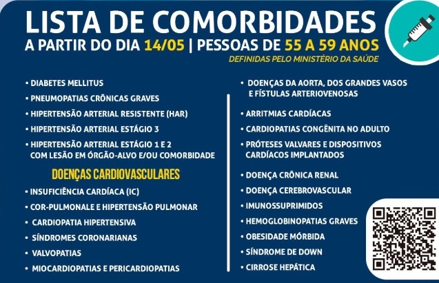 Se você, ibiunense, fizer parte do grupo de comorbidades, listados pelo Ministério da Saúde, verifique se está dentro dos requisitos, divulgados no site da Prefeitura de Ibiúna, através do link: https://ibiuna.sp.gov.br/lista-de-comorbidade/lista-de-comorbidades-covid-19/image. Confira na lista abaixo: