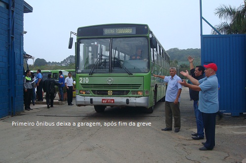 PRIMEIRO ÔNIBUS DEIXA A GARAGEM DA VIAÇÃO, APÓS FIM DA GREVE QUE DUROU QUATRO DIAS