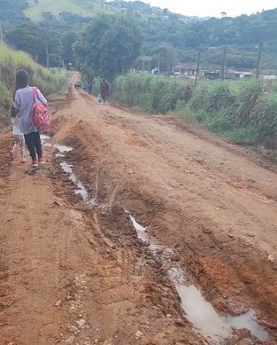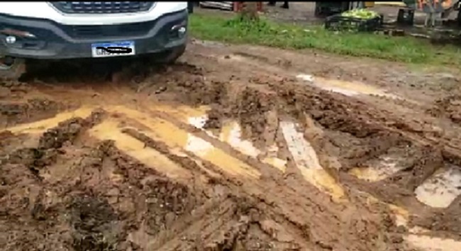 “Olha como está a estrada que vai para o bairro Vieirinha. Os ônibus não estão passando para pegar os estudantes. Tenho que andar 4 km para levar minha filha à escola E.E. da Vargem”, afirma Cláudio Sousa.