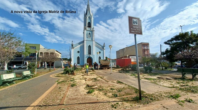 As duas fileiras de fícus (figueira) que estavam plantadas na praça da Matriz de Ibiúna, em frente à fachada da igreja, foram removidas hoje (4) pela Secretaria do Meio Ambiente.