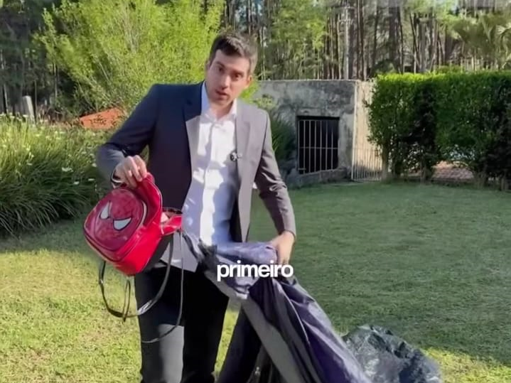 Na semana das crianças incorpora o personagem do Homem Aranha. “Na semana das crianças quem manda na cidade é o Homem Aranha e eu venho aqui para convidar você, meu amiguinho e minha amiguinha, e tudo vai ser de graça brinquedos, personagens e muita alimentação.” É naturalmente engraçado.