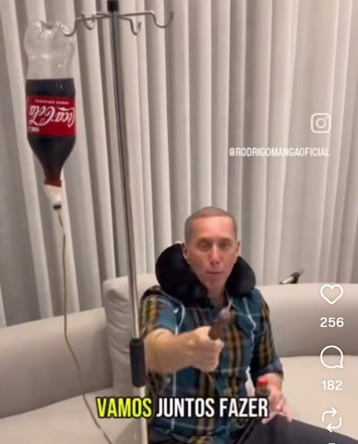 Outra cena. Sentado em sua poltrona no gabinete. De repente dois rapazes começam esbofeteá-lo. O pano de fundo seria um ato demonstrando insatisfação com a falta de remédios nas unidades de saúde do município. Então, Manga anuncia que agora os munícipes, se precisarem de medicamento basta ir a uma farmácia credenciada e pegar o remédio. A Prefeitura pagará a farmácia via Pix.