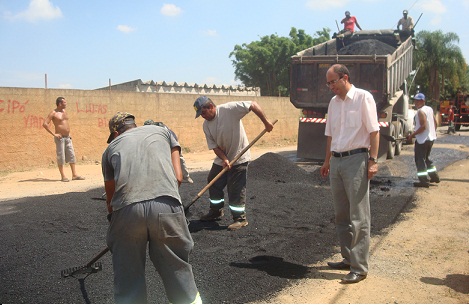 O prefeito Eduardo Anselmo inspecionou hoje o início das obras de tapa-buracos na Estrada Júlio Dal Fabro, mais conhecida como Estrada Vargem do Salto, que foi objeto de manifestação pública na semana passada. “Vim conferir se os funcionários estavam cumprindo o compromisso que assumimos com representantes do bairro [limpeza e reparo nos acostamentos e tapa-buracos]. Verifiquei que eles estão se empenhando para que isso aconteça”, afirmou o prefeito, que foi elogiado por moradores que tiveram atuação destacada no movimento que ergueu uma barricada no centro da Vargem do Salto.