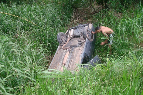 É muito provável, como acontecera várias vezes antes, o mato ali existente, a água e as margens úmidas do riacho amorteceram a queda e como todos estavam com cinto de segurança tiveram sorte de não sofrerem lesão alguma.