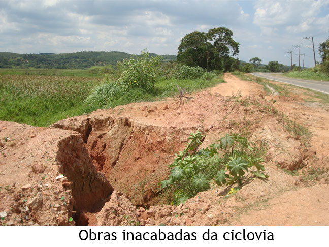 Outro ícone é a famigerada ciclovia. Nem é preciso dizer muita coisa e só verificar as fotos de uma obra não concluída e a situação em que foi deixada. Por que a obra parou? Os recursos acabaram antes da conclusão da obra? Quem planejou? Quem deveria executar? O que aconteceu? [leia a matéria “Prof. Eduardo corre contra o tempo para salvar verbas para Ibiúna”]