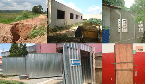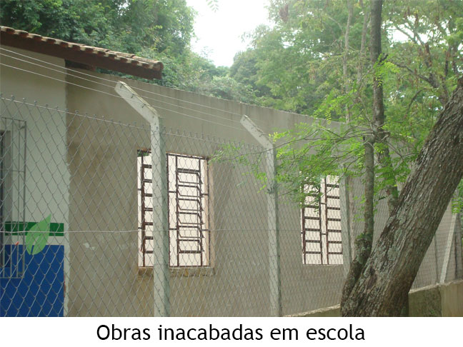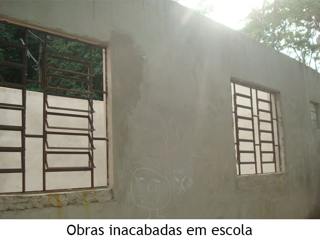 Sobre as reformas das escolas, há um exemplo sintomático: uma das “novas” salas da “Escola Municipal José Muniz”, no bairro da Cachoeira, está sem telhado e sem porta, portanto também não concluída.