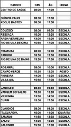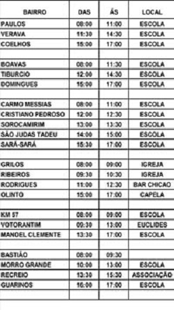 LOCAIS E HORÁRIOS DE VACINAÇÃO