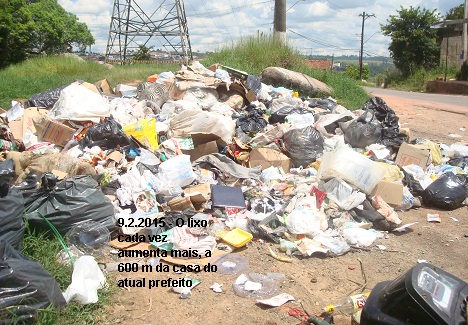 Assim como está acontecendo com o problema com o transporte público, grande é a insatisfação e até mesmo revolta da população. Nos lugares onde havia caçambas [que foram retiradas pela empresa anterior] agora há montes enormes de lixo. No bairro da Cachoeira, onde habitualmente havia duas caçambas, a população isolou a área com fitas plásticas, a fim de evitar que o lixo continuasse sendo jogado no chão. Quem possui meio de transporte está levando o lixo para o início da estrada do mesmo nome e ali depositando na terra. O volume está cada vez maior [veja foto] e se localiza cerca de 600 metros da casa do atual prefeito.