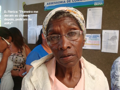 Dona Floriza foi escolhida para receber as chaves e posar para os fotógrafos, assim como aconteceu com mais algumas pessoas. Depois que o evento terminou, foi procurada e lhe pediram a chave de volta. Não entendeu nada!
