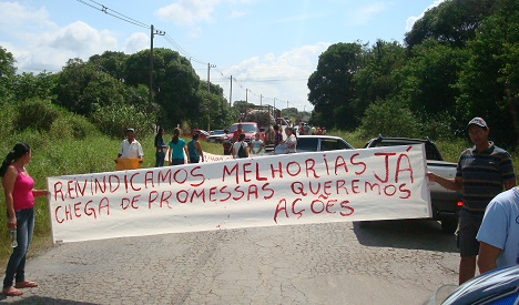 Num movimento pacífico, mas com evidentes sinais de coragem, utilizaram alguns pneus velhos e apenas duas faixas para bloquear a passagem de veículos. Começou por volta das 10h40. Ambas haviam acabado de ser pintadas no quintal de uma casa no centrinho do bairro e refletem os sentimentos da população local. Uma delas diz: “Reivindicamos melhorias já. Chega de promessas, queremos ação.” A outra: “Há 28 anos aqui nascia um asfalto, e hoje nos resta vergonha.”