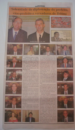 Numa demonstração incabível de desrespeito ético e de direito autoral, o jornal “Notícias de Ibiúna” (edição de 3 de outubro a 20 de dezembro) publicou – sem consultar, sem pedir autorização, sem creditar a fonte – nada menos do que dezoito fotos e o texto integral da cobertura da diplomação do prefeito, vice-prefeito e de quinze vereadores, elaborados e veiculados na revista vitrine online no dia 18 de dezembro.