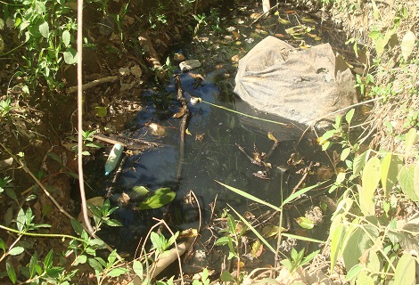 Um morador disse que durante a instalação dos tubos de plástico, trabalho, aliás, feito com muita rapidez, no ponto em que se encontra o buraco um tubo largo que passa sob a estrada acabou obstruído. Sem vazão, nesse tempo de dengue, a água se acumulou ali sem ter para onde fluir. Vê-se também a presença de saco de lixo na superfície da poça.